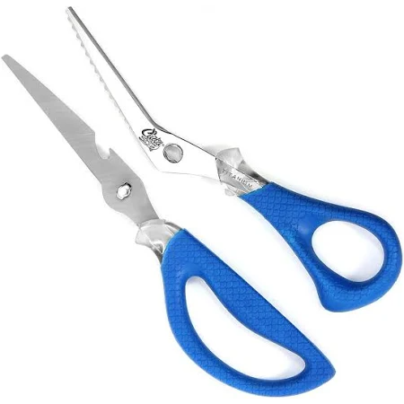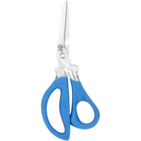 This 8"" Marine Shear features detachable handles for easy cleaning. Blades are Titanium Bonded High-Carbon Steel which is 3x harder than untreated steel and will stay sharper longer. One blade edge can be used as a fish scaler and another blade has an integrated bottle opener. Cutting edges are serrated for increased performance. Full tang construction and non-slip Cuda scale pattern handles. Serrated Edge The Cuda 8” Multifunction Marine Shear features a serrated edge that is perfect for fish scale removal. The shear blades are sharp and sturdy to help cut through bone, skin, cartilage and more with ease. Robust Blades Made of Titanium Bonded stainless steel, the shear blades will handily resist corrosion and adhesives wile staying sharp across countless uses. Additionally, the blades boast a Rockwell hardness rating of HRC52-55, offering durability and edge sharpness. Comfortable, Ambidextrous Grip Works great for both left and right-hand users, featuring non-slip TPR and Cuda scale pattern handles that ensure comfort and maneuverability in the field.