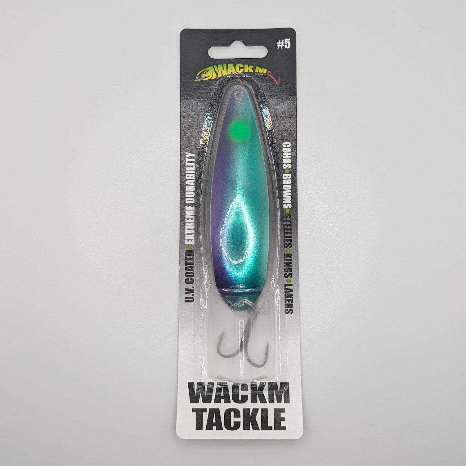 Les cuillères Wackm sont peintes individuellement et fabriquées à la main avec fierté. Notre système de peinture et notre technologie de cuisson confèrent à la cuillère une finition élégante et une durabilité suprême. Toutes nos cuillères sont peintes avec de la peinture UV, une finition UV ou les deux. Vous devrez tenir les cuillères devant une lampe UV pour les voir. Ce n'est pas toujours ce que vous voyez, mais ce que le poisson peut voir !
