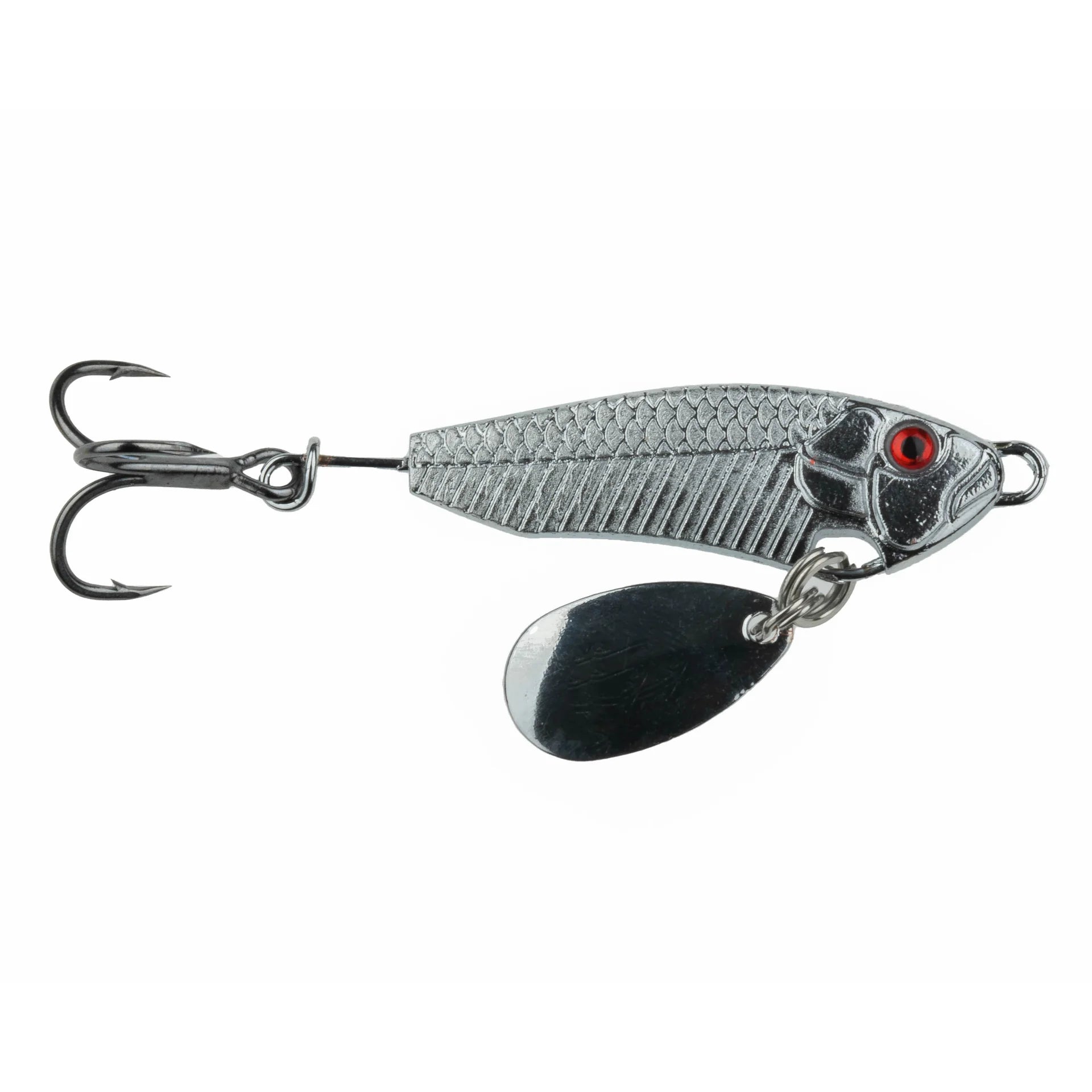 The premium zinc, UV-coated body carries an Indiana blade mounted on the belly which swings loosely on the rise and fall to maximize both flash and vibration while creating the erratic action of a baitfish in trouble.