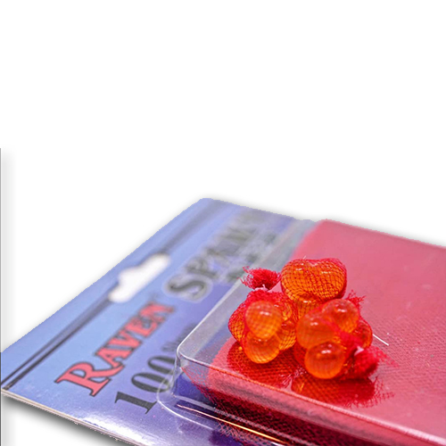 Raven Spawn Net is conveniently pre-cut in 3” X 3” squares and ready for tying. The super soft netting material gently molds around roe to make a perfect spawn bag every time. Raven Spawn Net works great for virtually any soft baits including salmon roe, mussels, corn, shrimp, worms, paste and cheese. Available in 8 popular fish-catching colours.