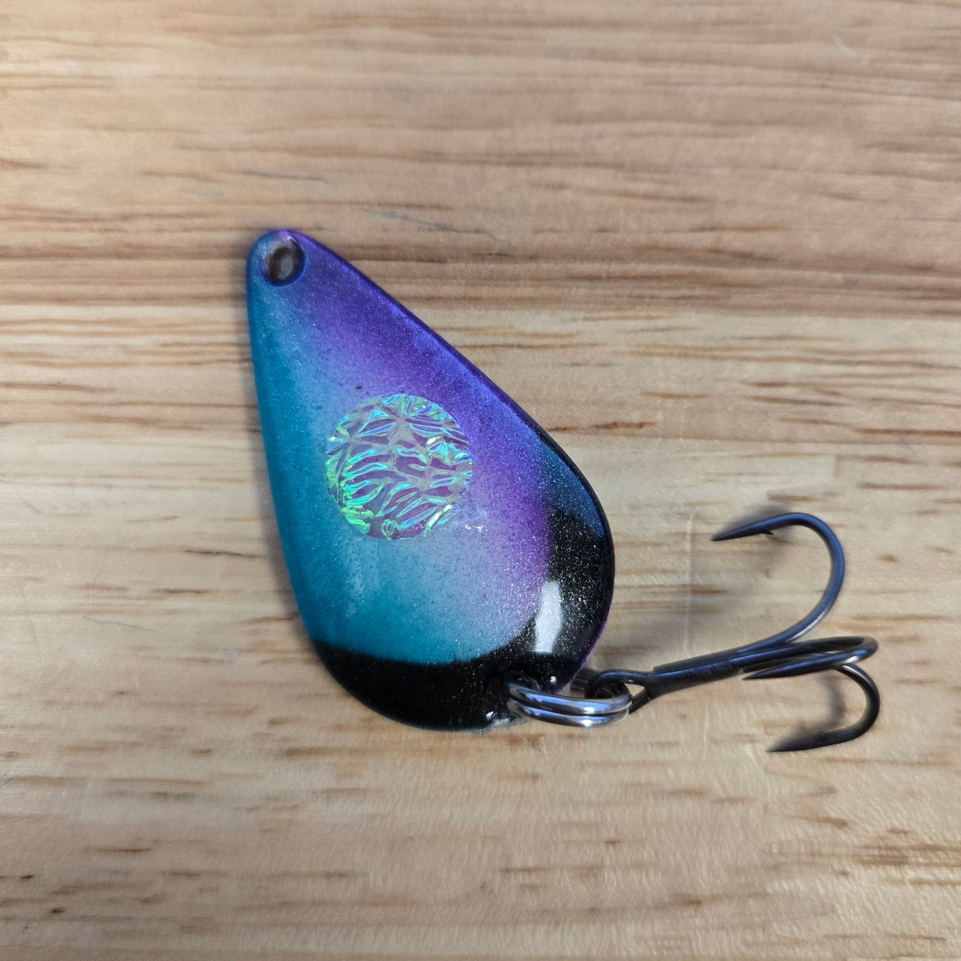 This ultra glow casting spoon features a multi-species pattern that is built for the river, lake, shore, or pier. Featuring our new glow product, holographic vinyl and UV florescent colours.
