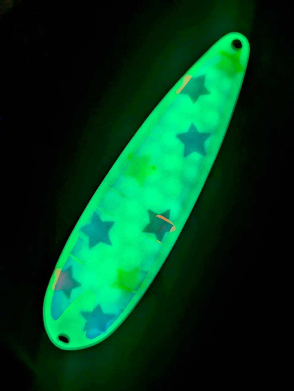 These high quality, lightweight trolling spoons are designed to elevate your fishing experience. They have an irresistible fluttering action that sets them apart. At TNT Fishing Lures we use only quality American made blanks, solid stainless heavy duty split rings, 2x strength treble hooks, high quality paints and a UV protective durable top coat.