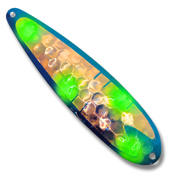 These high quality trolling spoons are designed to elevate your fishing experience. They have an irresistible fluttering action that sets them apart. At TNT Fishing Lures we use only quality American made blanks, solid stainless heavy duty split rings, 2x strength treble hooks, high quality paints and a UV protective durable top coat.