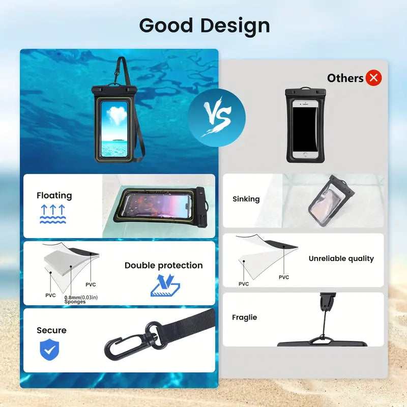 Floating Waterproof Phone Case and Lanyard, Universal Waterproof Phone Case, Suitable for iPhone 15 Pro Max/14 Pro/13/12/11 Samsung S23/S22/Xiaomi, Max 6.8 Inch Approx. 17.2cm Suitable for Swimming, Rowing, Kayaking Adventures, Paddleboard, on the boat or dock.